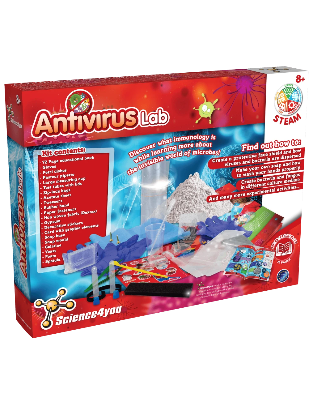 Science4you antivirus laboratorium met 15 activiteiten en educatief boek. Geschikt voor kinderen vanaf 8 jaar.