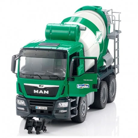 MAN TGS vrachtwagen met betonmixer van Bruder. Deze betonmixer heeft veelzijdige speelfuncties en veel realistische details.