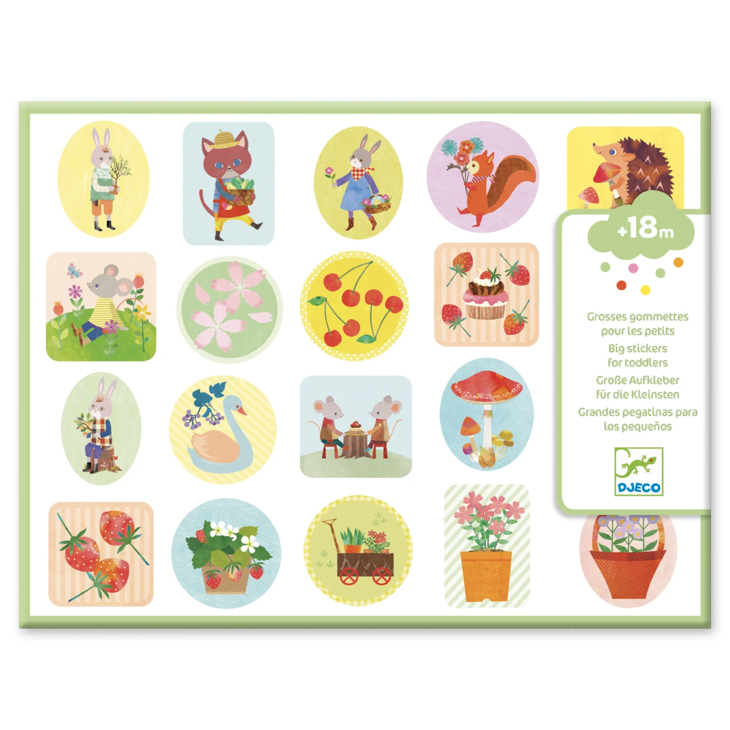 Meer dan 100 stickers met als thema tuin, speciaal aangepast voor kinderen vanaf 18 maanden. Grote stickers, zeer gemakkelijk vast te pakken; de overbodige delen zijn al verwijderd. Een kennismaking met plakken voor de kleintjes!
