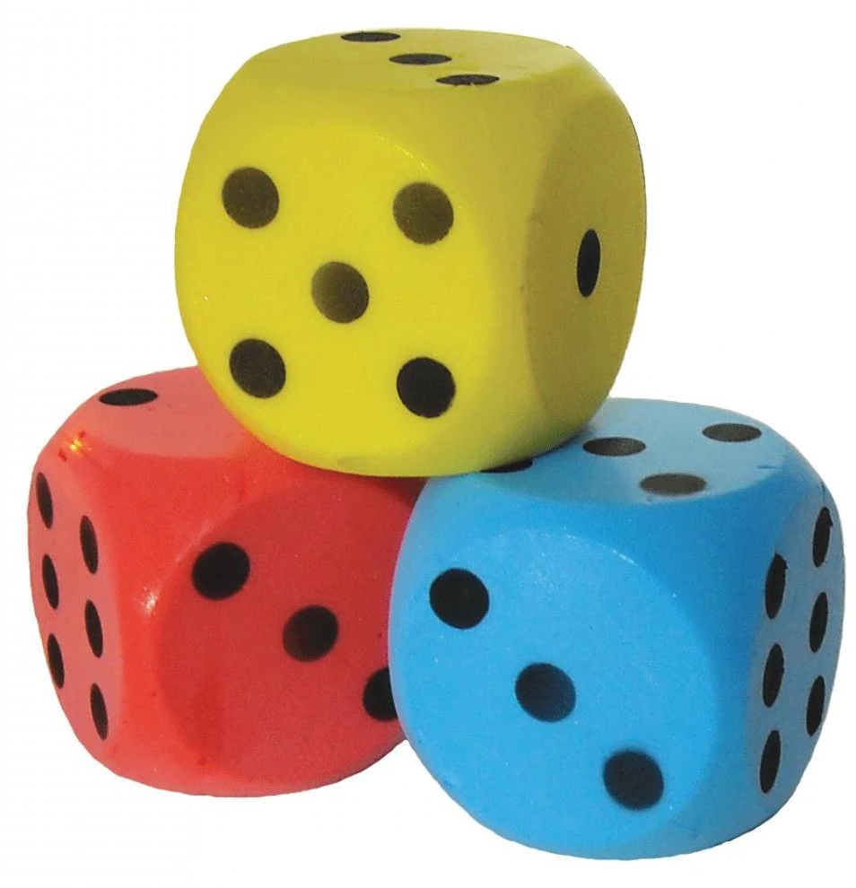 Schuimrubber dobbelsteen. Nu leverbaar in geel en rood
