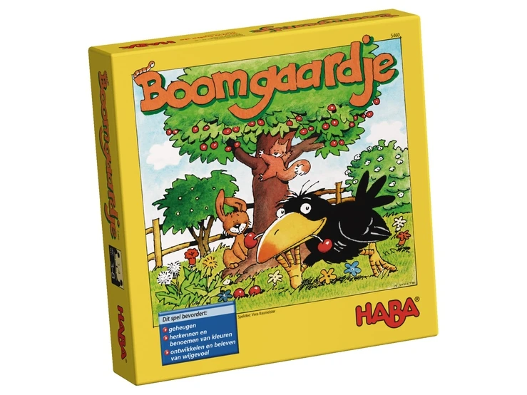De kinderen willen sappige kersen plukken, maar ook de brutale raaf sluipt eropaf. Wie kan de vruchten het snelst oogsten?