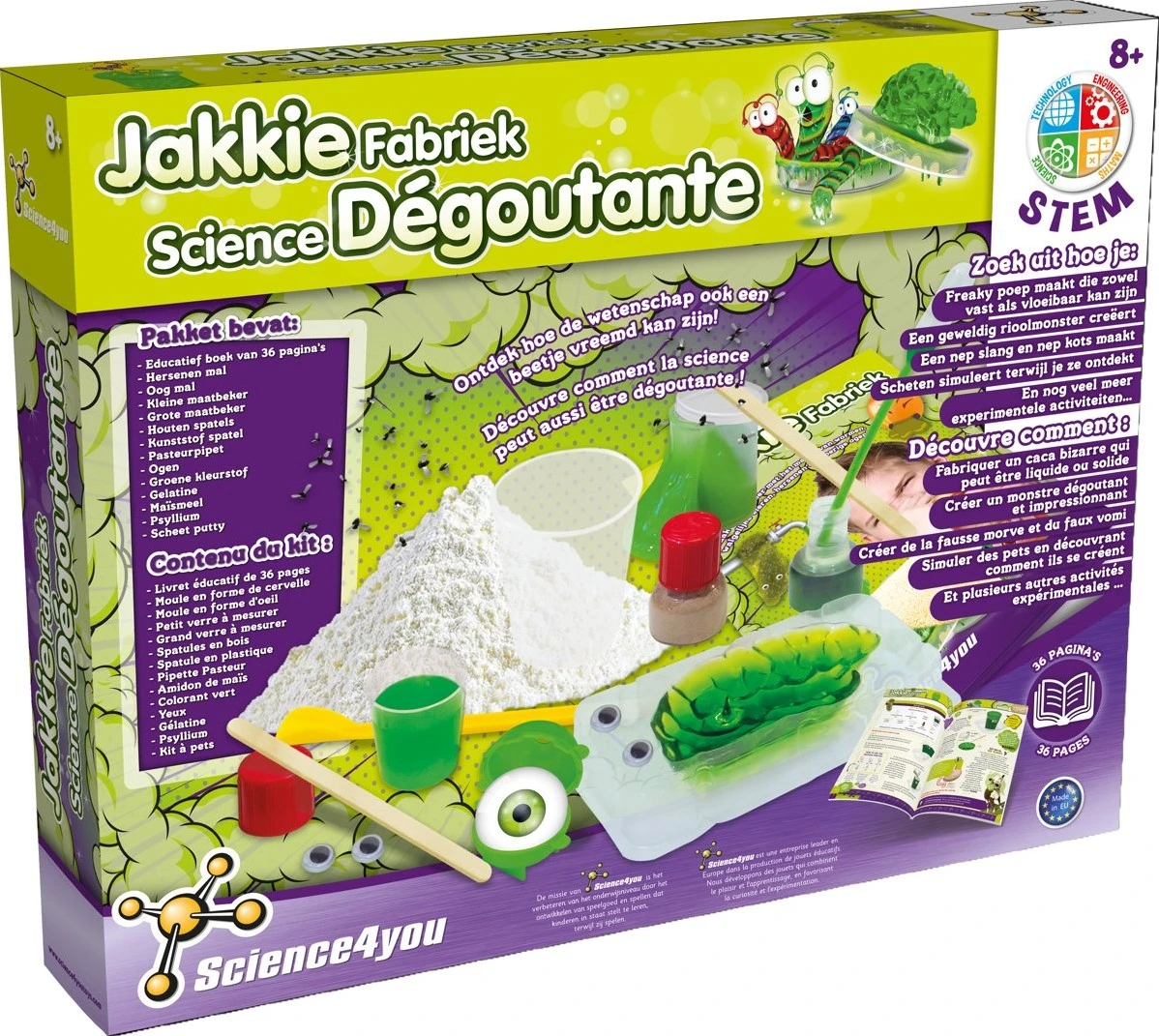 Jakkie fabriek science4you maak zelf de meest vieze “poep”, slijm, snot en scheten met deze jakkie fabriek. Ruim 13 activiteiten en de mogelijkheid om 15 dingen te maken, vermaakt jou en je vrienden uren.