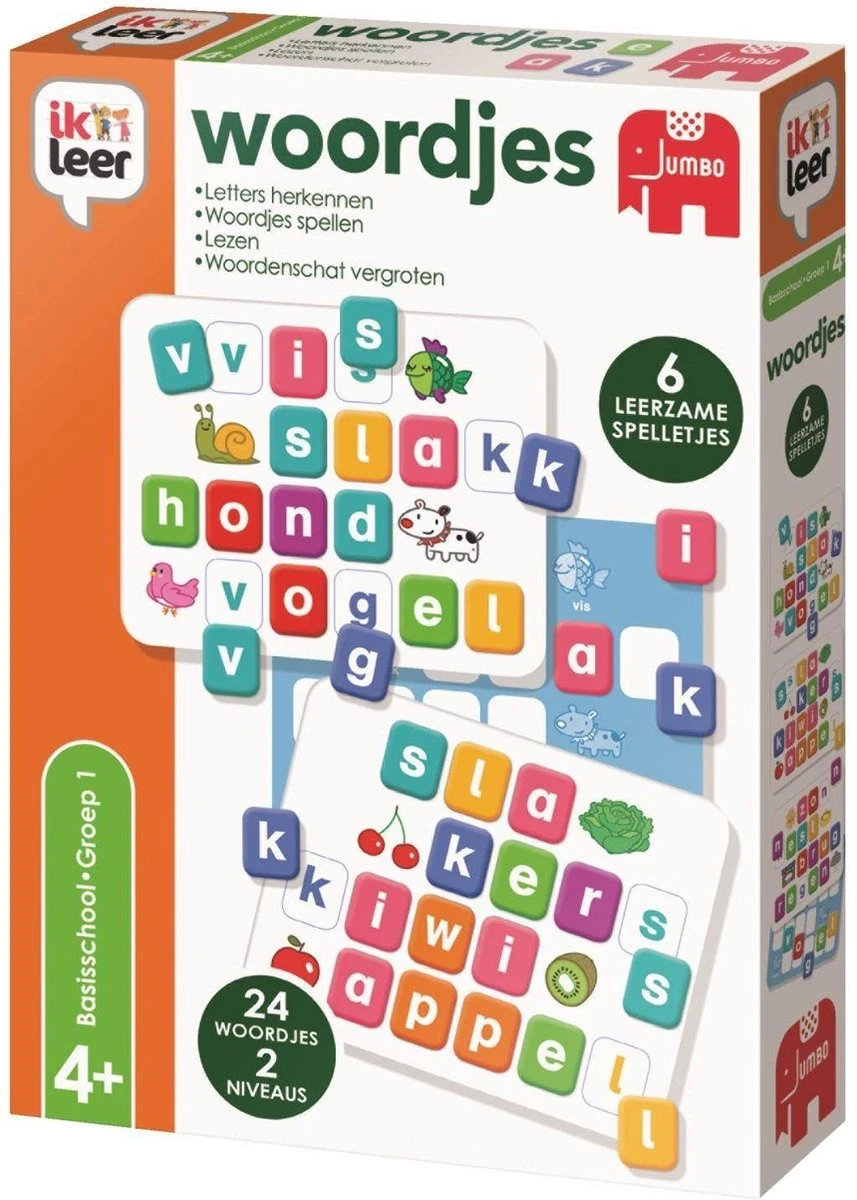 Met ‘ik leer woordjes’ leren kinderen spelenderwijs letters herkennen, woordjes spellen, lezen en de woordenschat vergroten.