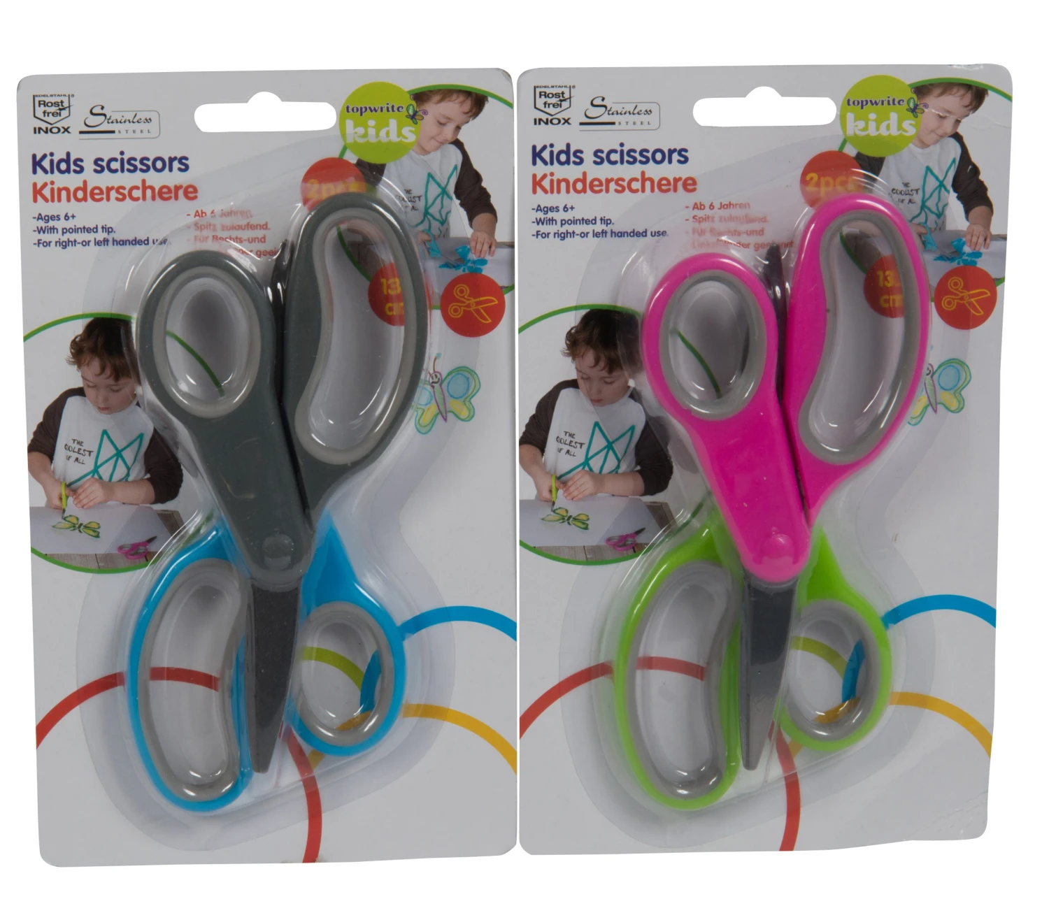 Set van 2 knutselschaartjes voor kinderen. Met ergonomische greep en taps toelopende punt. Voor gebruik in rechter- en linkerhand.