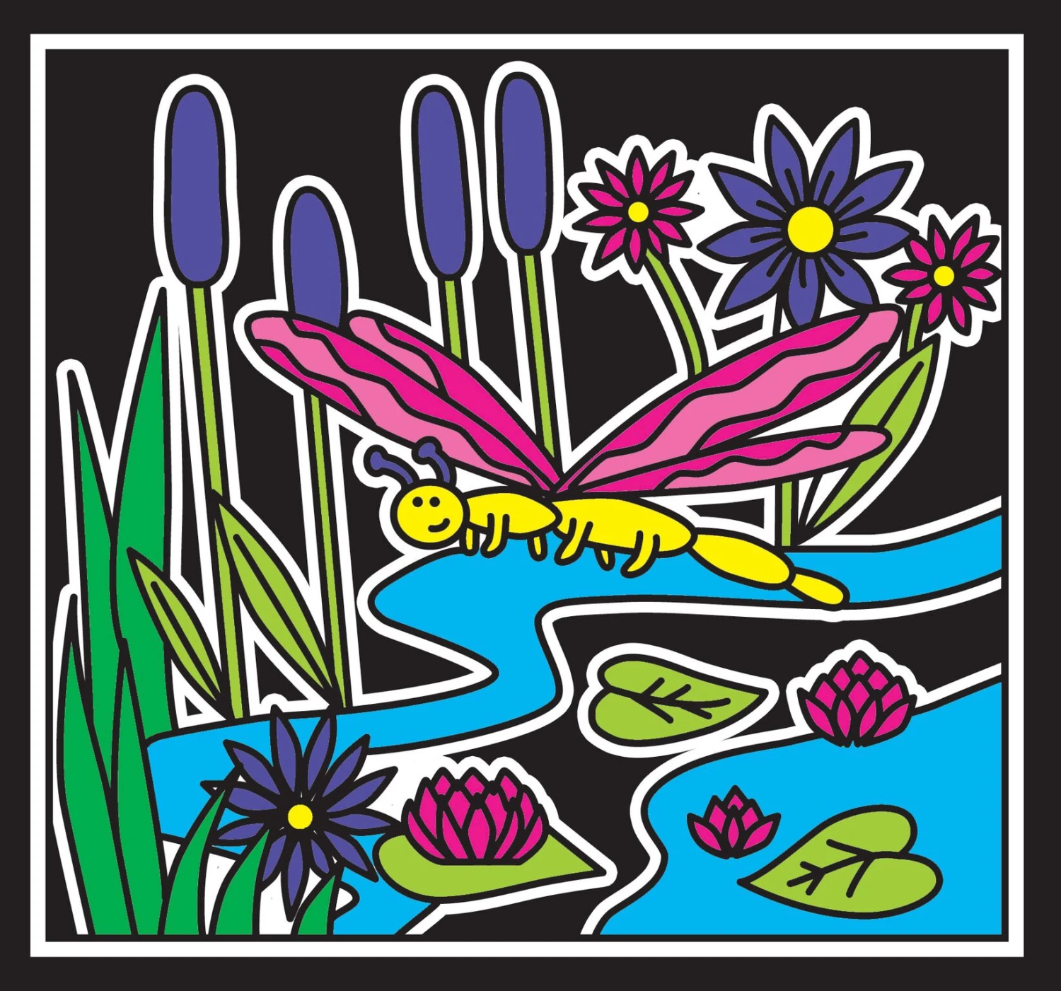 Maak de mooiste schilderijtjes door de fluwelen kleurplaten in te kleuren met de meegeleverde stiften.