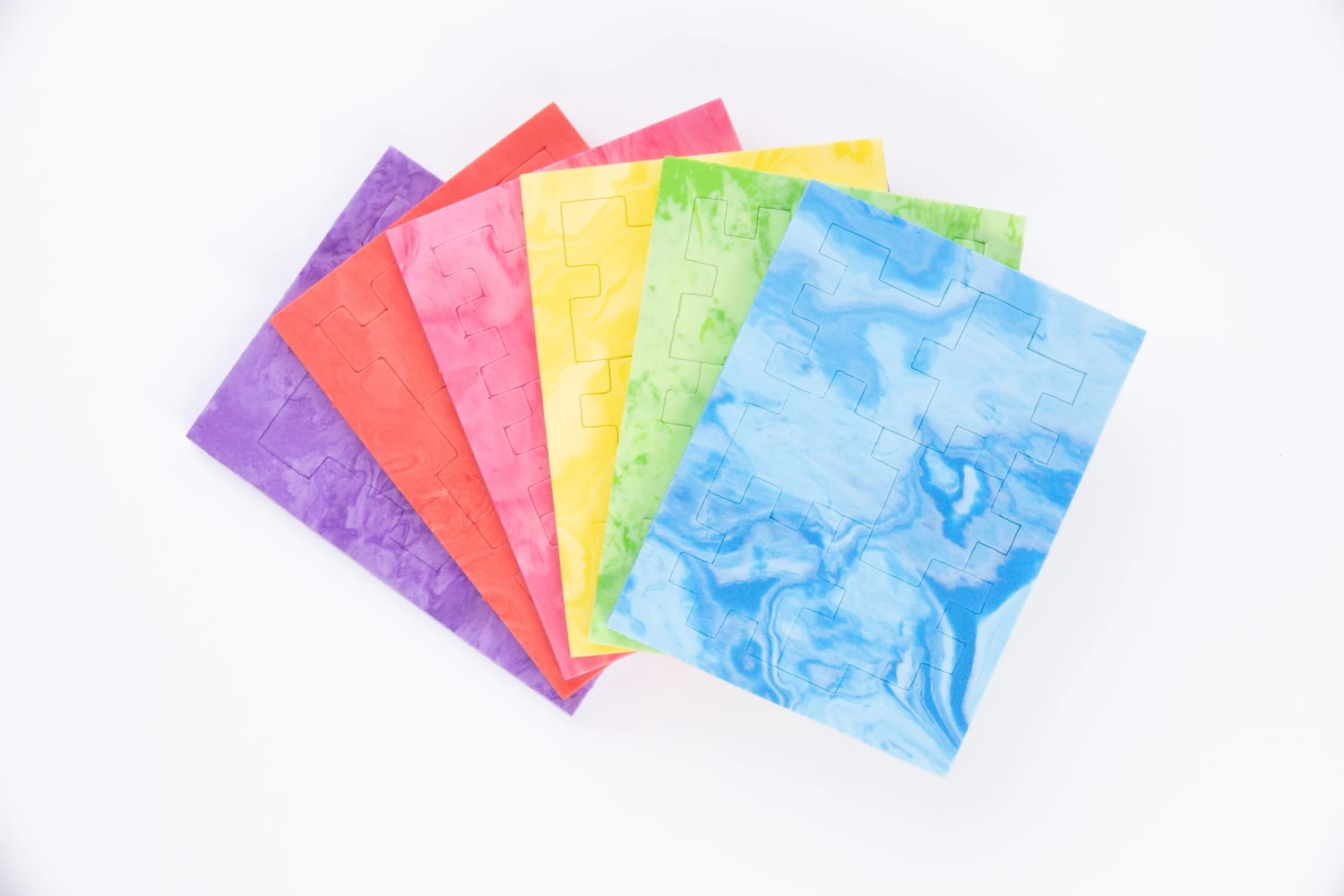 Er zijn zes verschillende puzzels, zijn elk uniek en hebben meerdere oplossingen. Steeds hebben de puzzels een andere kleur. Van elke 2D puzzel kan je een perfecte 4 cm kubus vormen. Puzzel eerst een kubus met de zes stukjes en plaats ze daarna terug in hun kader. Een kei in het maken van de kubus? Goed gedaan! Dan is het nu tijd om de kubus terug in zijn kader te plaatsen.