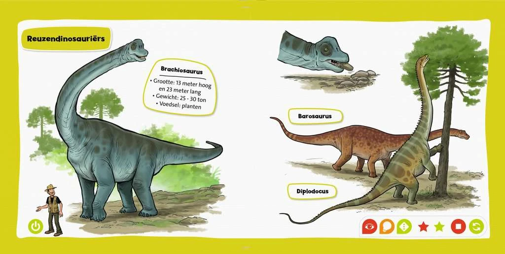 Samen met paleontoloog Floris Fossilus ontdekken kinderen meer dan 30 verschillende soorten Dinosauriërs en komen ze dingen te weten over het leven op Aarde miljoenen jaren geleden. Met spannende geluiden en afwisselende spellen biedt dit boek interactief leerplezier voor thuis en onderweg.
