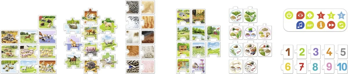Alleen of samen: tiptoi® verteld de regels en is spelleider. Bij het puzzelen en rangschikken van de dieren oefenen we je concentratie. Wie weet, welk dier de appel lust? En hoeveel jongen heeft de egel? Samen met tiptoi leer je de getallen van één tot en met tien.